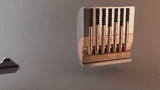 - Les serrures à pompe : la clé entraîne des dents qui font coulisser des goupilles et permettent ainsi de déverrouiller la porte.